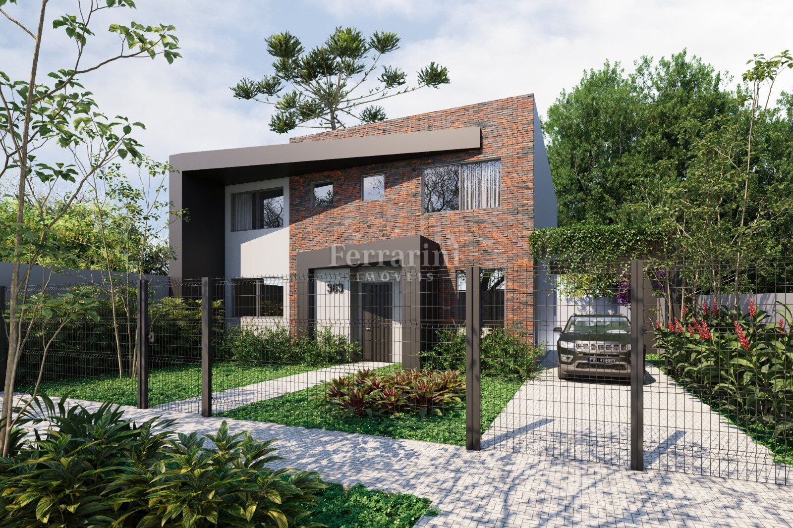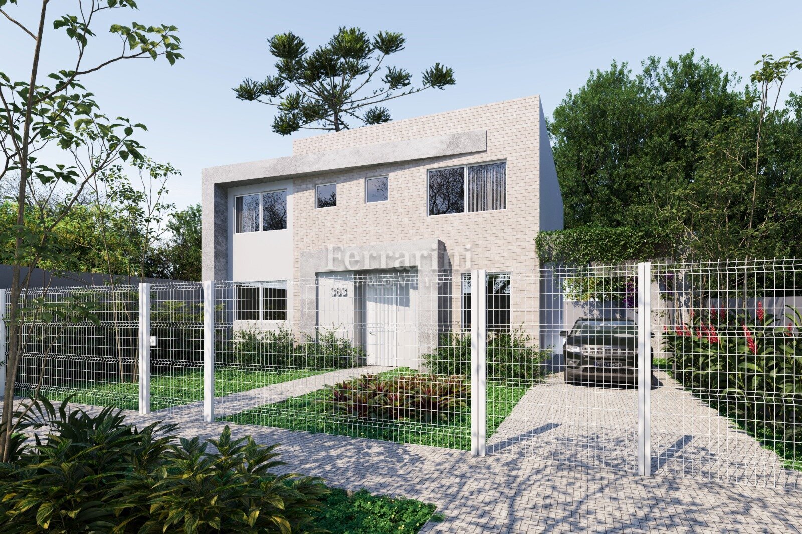 Jardim frontal, rua tranquila, sem saída.