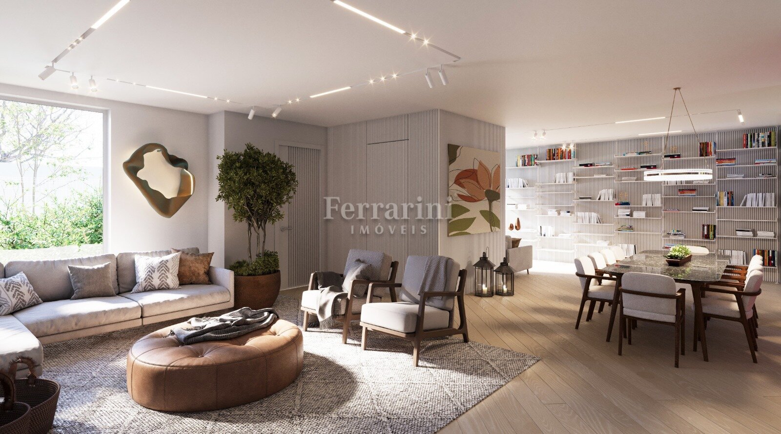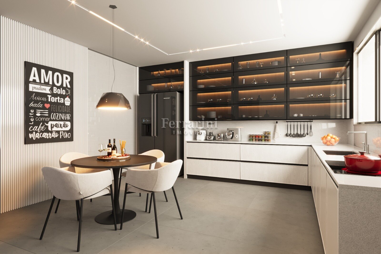 Ampla sala para Três ambientes, cozinha em conceito aberto, BWC social,